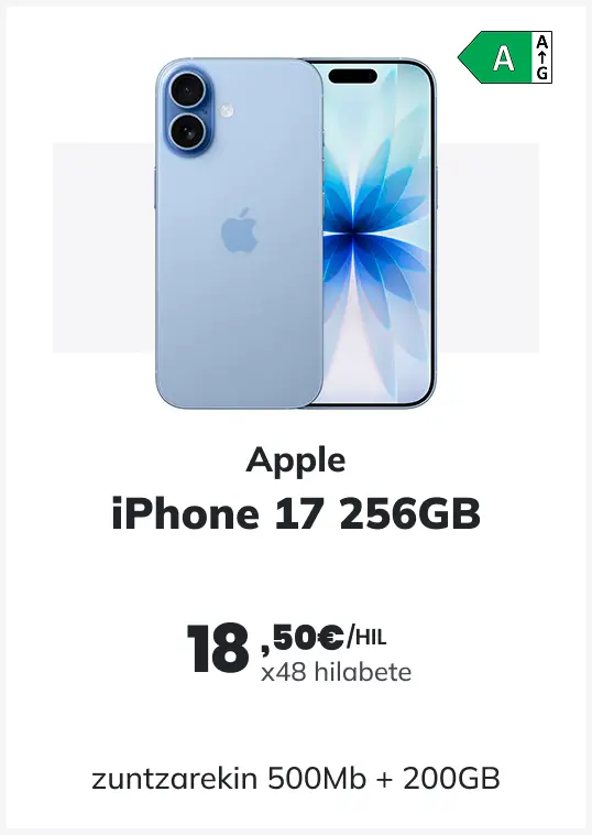 1Gb eta linea finkoa | 200GB eta dei mugagabeak | 46,90 3 hilabete, ondoren 56,90 |