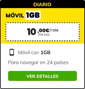 Antes de viajar a un país fuera de la Unión Europea y países asociados, te recomendamos que buques tu país de destino en el buscador de países de esta página para conocer qué servicios tienes disponibles (Voz, SMS y Datos) en ese país y sus tarifas. No en todos los países fuera de la Unión Europea y asociados podemos prestarte el servicio de datos.